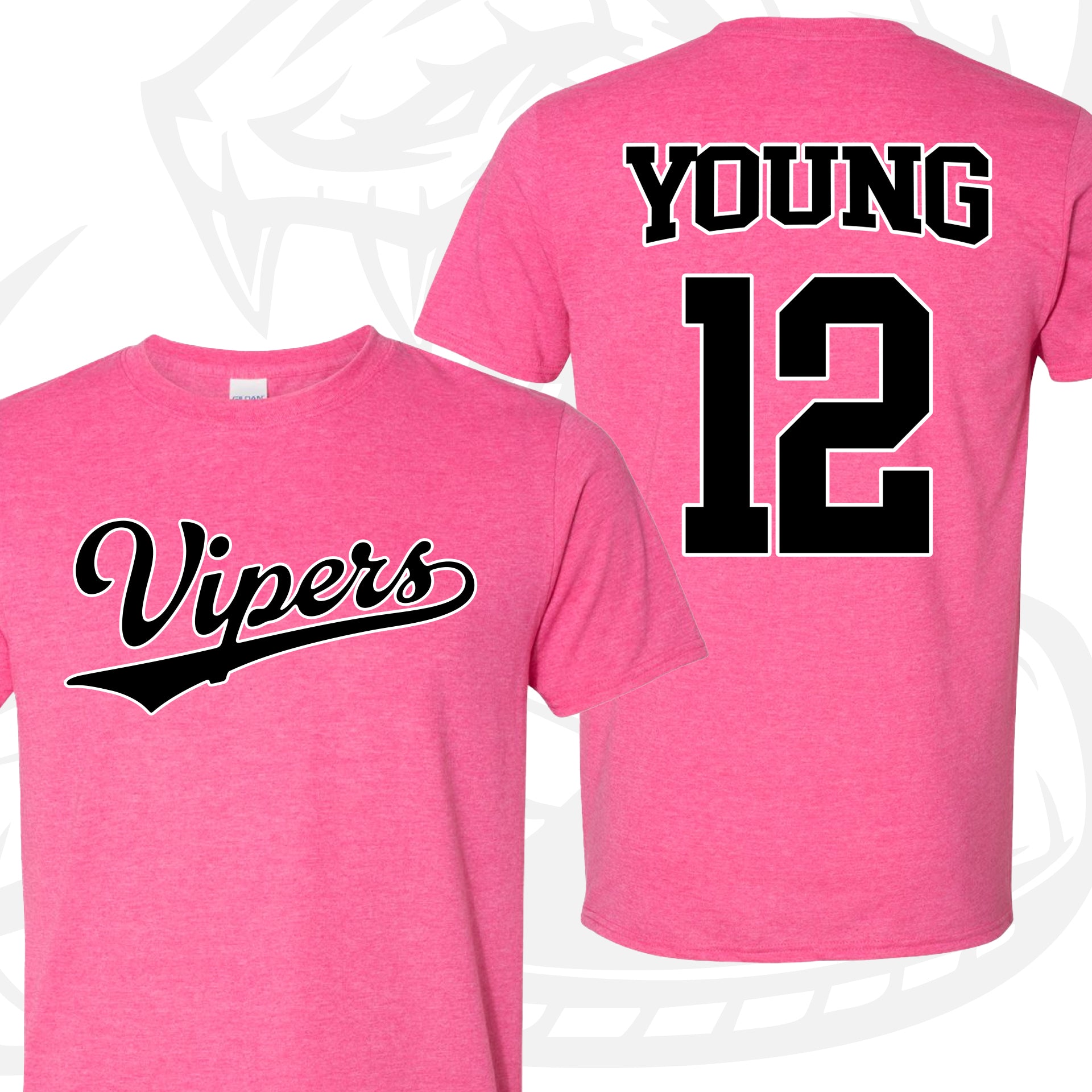 Celebrate Mother’s Day in style with your Vipers Mom Shirt — a bright pink tee made just for you. Featuring the classic "Vipers" script on the front, this shirt can be customized with your player’s name and number on the back to make it truly one-of-a-kind.